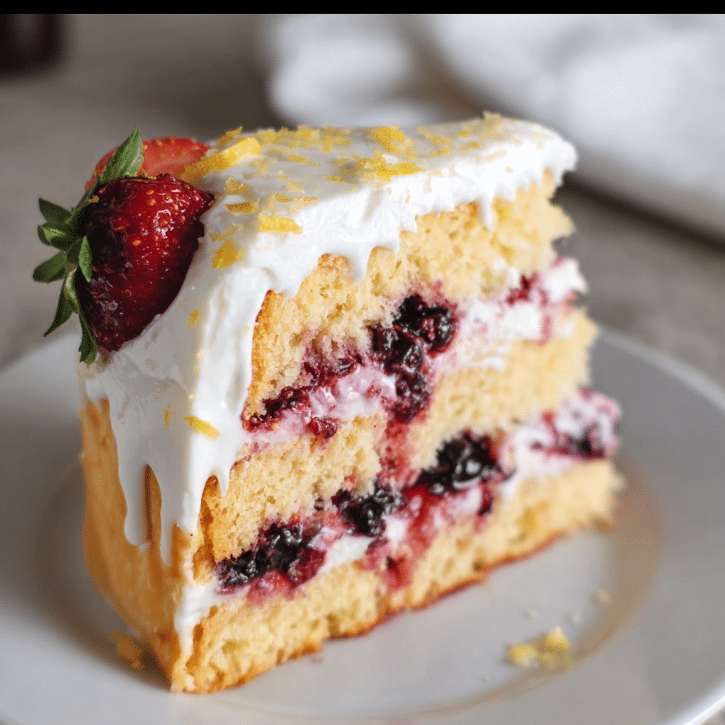 Elegant Lemon Lavender Blackberry Cake is a refined spring birthday cake featuring bright lemon layers, delicate floral lavender notes, and juicy blackberries. Beautifully balanced and lightly sweet, this sophisticated dessert is perfect for spring celebrations, garden parties, and elegant birthdays.