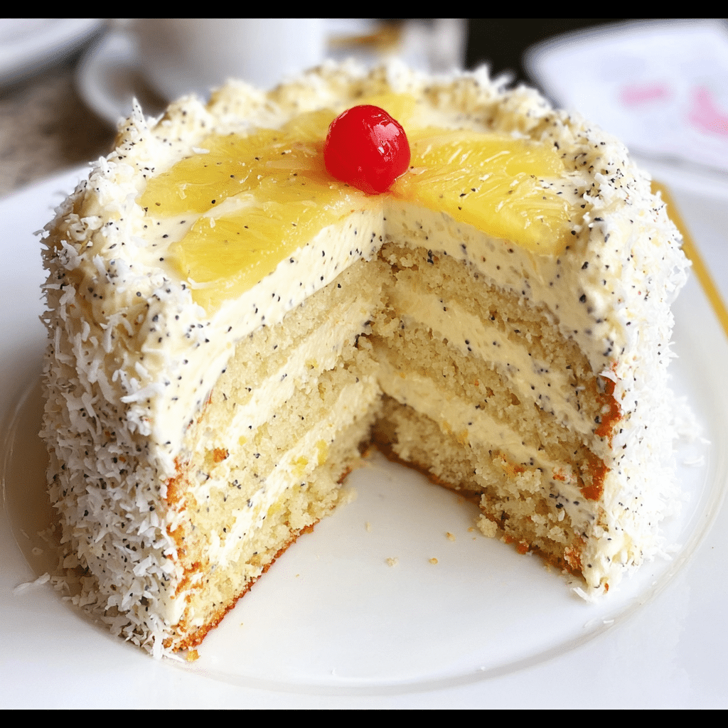 Piña Colada Layer Cake is a tropical-inspired spring birthday cake featuring moist layers infused with coconut and pineapple flavor. Light, sunny, and irresistibly festive, this cake brings vacation vibes to spring celebrations and birthday parties.