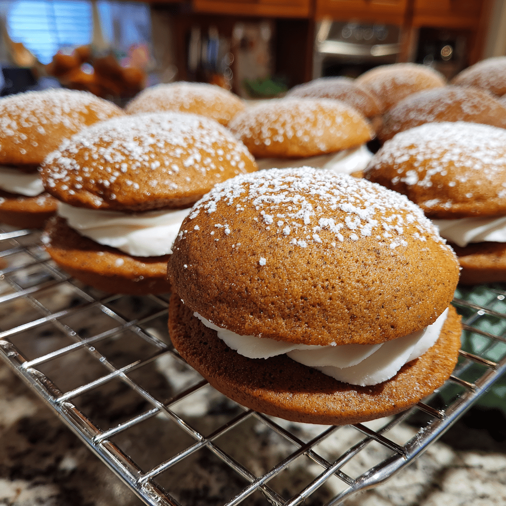 As winter approaches, try adding a hint of peppermint to your filling. Peppermint extract can create a fresh, festive twist that pairs beautifully with the warm spices of the whoopie cakes. You can even sprinkle crushed candy canes on top of your filling for a fun crunch and pop of color.