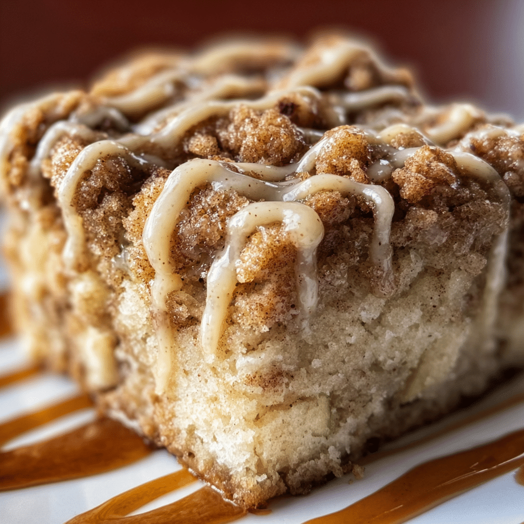 Apple Crumb Cake Topped with Cinnamon Apple Drizzle
