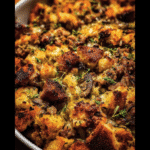 This stuffing recipe combines the earthiness of mushrooms, the sweetness of chestnuts, and the savory richness of sausage, making it a luxurious addition to your holiday table. Start by roasting the chestnuts if using fresh ones, as this will enhance their sweet flavor. Sauté a mix of mushrooms such as button and portobello to deepen the stuffing’s flavor profile. When combining these ingredients, ensure to use a good quality chicken or pork sausage for added richness. Finish with a drizzle of broth to keep the stuffing moist, and bake until golden brown and crispy on top for the perfect texture.