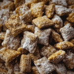 Apple pie muddy buddies are a scrumptious variation of the traditional muddy buddies, blending the essence of apple pie into a crunchy snack. To create this treat, mix Chex cereal with melted white chocolate and apple pie spice for that comforting flavor. Toss in some chopped dried apples or pie filling bits for added texture and authenticity. Once coated, sprinkle with powdered sugar for sweetness and let it cool on parchment paper. This snack is ideal for autumn gatherings or as a cozy evening treat!