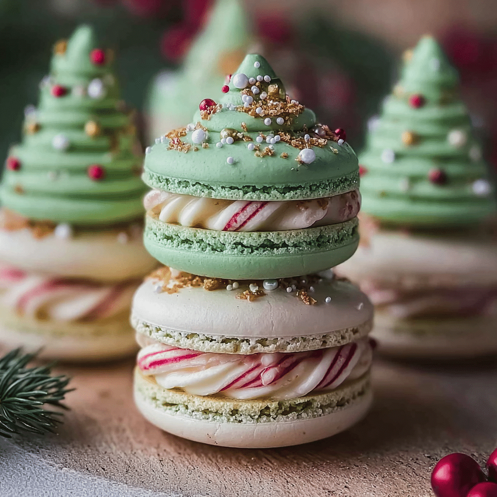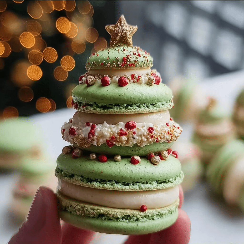 The Christmas tree cake macarons recipe combines the delicate texture of macarons with festive flavors and decorations to create a holiday treat. Start with a classic macaron shell made from almond flour, powdered sugar, egg whites, and granulated sugar. For flavor, consider adding peppermint extract or vanilla to the batter, and color the shells green using gel food coloring. Once baked, fill the macarons with a buttercream or ganache that complements the festive theme, such as a chocolate peppermint filling. Don’t forget to decorate the assembled macarons with edible glitter or small sprinkles to mimic ornaments on a Christmas tree!