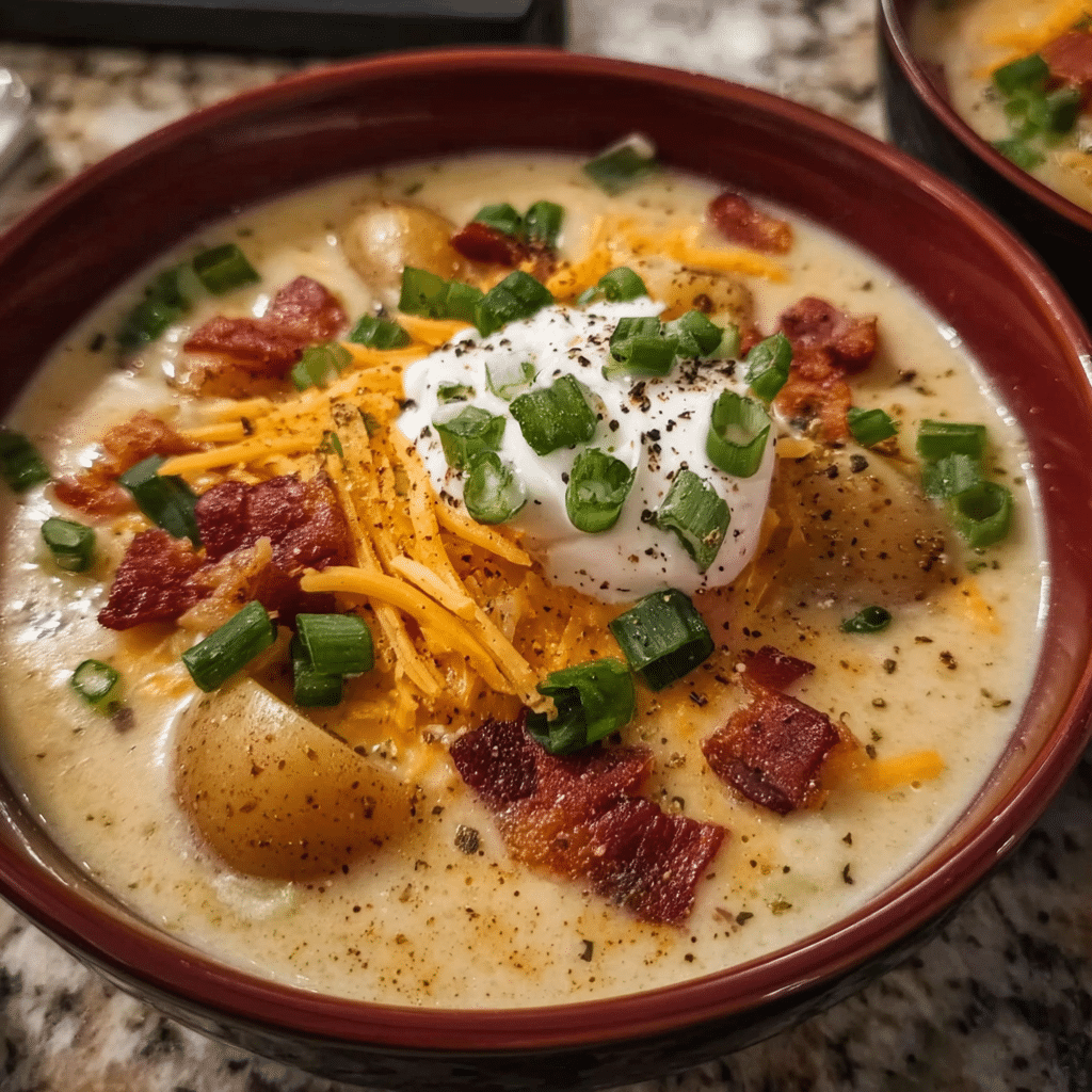 Comforting loaded baked potato soup is like a warm hug on a cold day, an invitation to gather around the table with loved ones. The first time I discovered this delightful dish was during a chilly fall evening at my grandmother’s house. The aroma wafting through the kitchen was intoxicating—smoky bacon mingling with the earthy scent of potatoes and the creamy goodness of cheese. As a child, I was always drawn to the kitchen, where the heart of the home thrived. That night, I watched my grandmother expertly peel, chop, and stir, all the while sharing stories of her childhood and the comfort food that shaped her family traditions. Little did I know that this simple yet rich soup would soon become a staple in my own home, a dish that embodies warmth, love, and family connections.