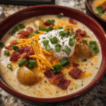 The history of comforting loaded baked potato soup goes beyond my family; it has deep roots in American cuisine. Potatoes, originally brought to America from South America, quickly became a staple across the country. As the recipe evolved, it absorbed influences from various cultures, particularly those of immigrants who brought their flavors and techniques. The classic loaded baked potato—with its toppings of cheese, sour cream, chives, and bacon—transformed into a hearty soup, perfect for those cold winter nights when you crave something warm and filling.