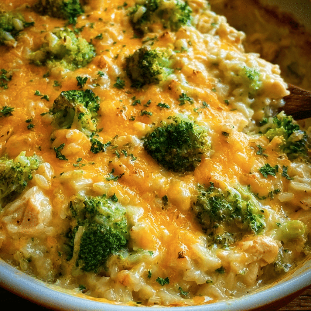 Creamy Chicken Broccoli Rice Cheese Casserole
