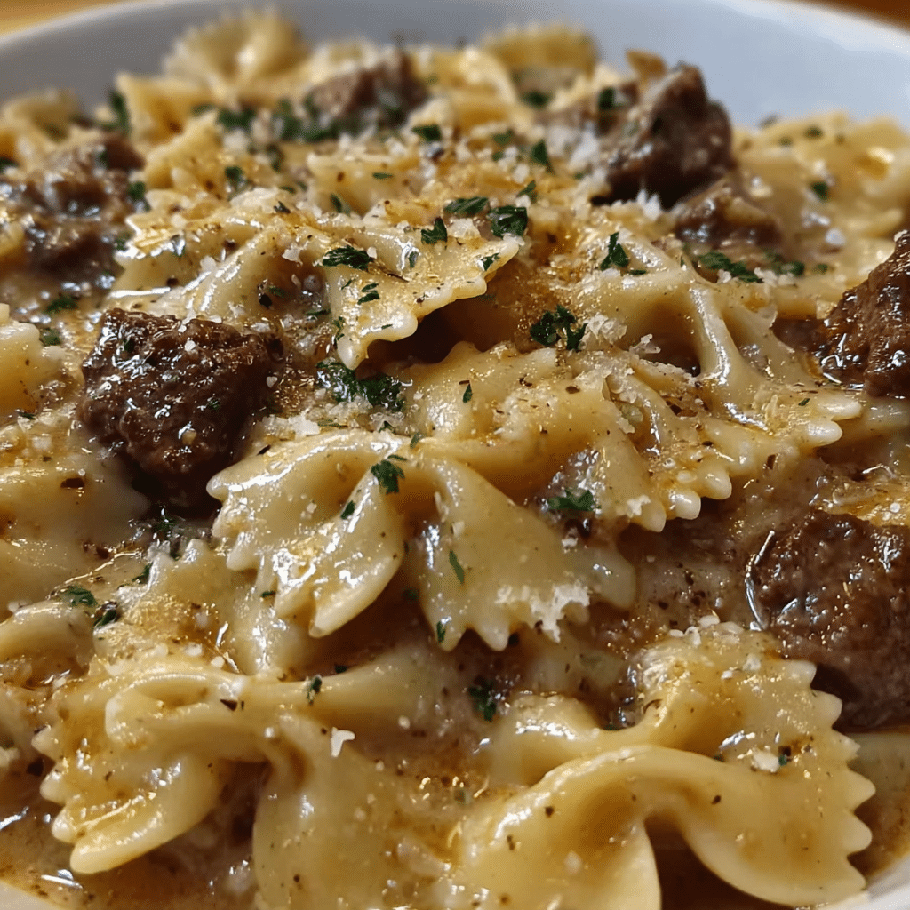 Creamy Parmesan Garlic Beef Bowtie Pasta