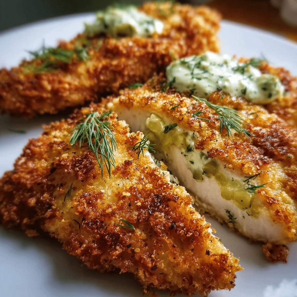 For those with dietary restrictions, there are various substitution options available. For a gluten-free version, you can replace the breadcrumbs with crushed gluten-free crackers or almond flour. If you’re vegan, consider using chickpea or tofu cutlets in place of chicken, and swap out the ranch dressing for a plant-based alternative. Nutritional yeast can also be used to mimic the savory flavor of Parmesan cheese. Lastly, if dill isn’t your favorite herb, feel free to use fresh parsley or chives as a garnish instead.