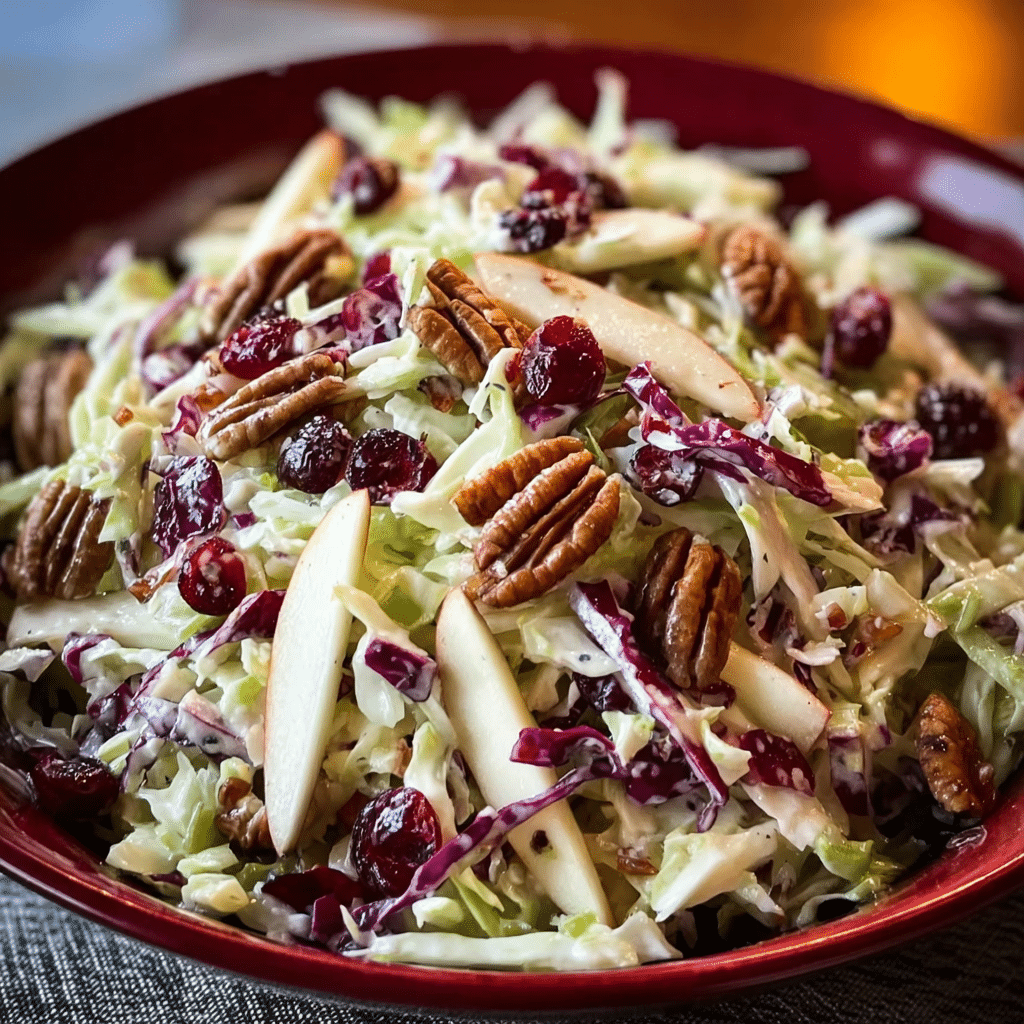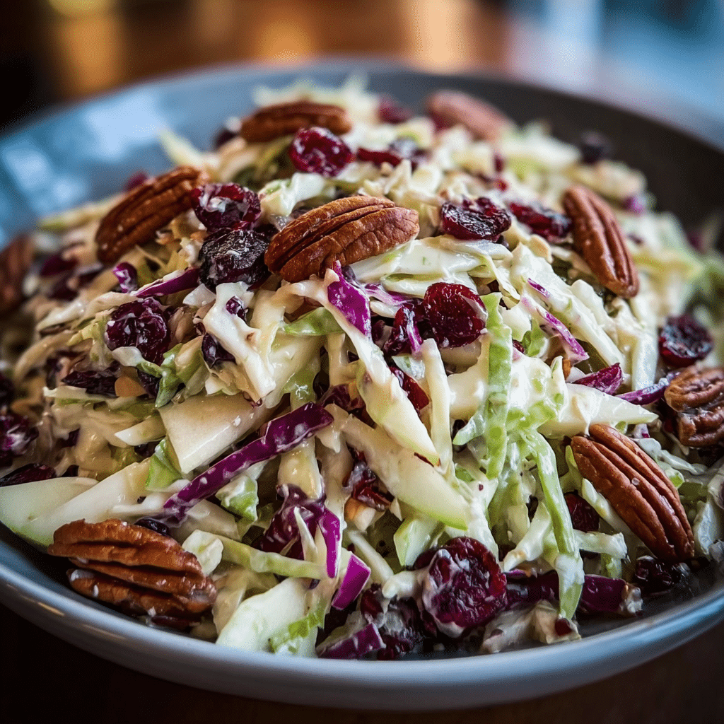 Beyond its deliciousness, easy apple coleslaw boasts a range of nutritional benefits. Cabbage is low in calories and high in fiber, making it an excellent choice for those looking to maintain a healthy diet. Apples add natural sweetness and are rich in vitamins A and C, along with antioxidants that promote overall health. Cranberries contribute a unique flavor while also providing additional nutrients and anti-inflammatory properties. The inclusion of pecans not only adds crunch but also healthy fats that are beneficial for heart health.