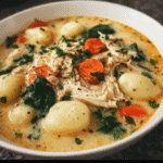 Olive Garden’s Chicken Gnocchi Soup is a beloved dish known for its creamy texture and hearty ingredients. To recreate this at home, focus on using fresh vegetables like carrots, celery, and spinach, along with tender chicken and gnocchi. A rich chicken broth forms the base, which you can enhance with a touch of heavy cream to achieve that signature creaminess. Don’t forget to season generously with Italian herbs, such as thyme and parsley, to mimic the restaurant flavor. For an added depth of flavor, consider sautéing the veggies in butter before adding them to the soup.