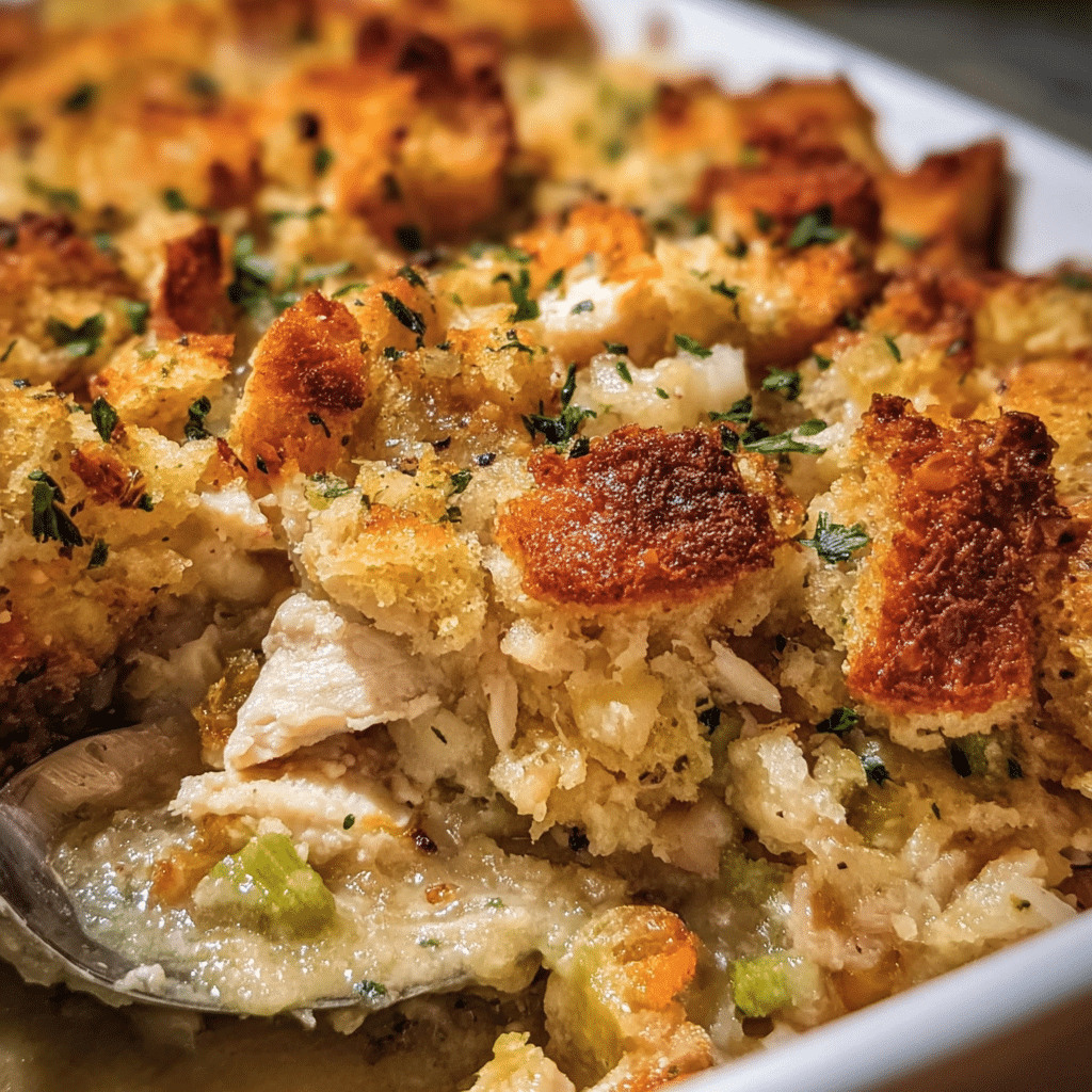 Stove Top Chicken Stuffing Mix: This is the star of the show! The stove top stuffing mix brings a unique blend of herbs and spices, creating a flavorful topping for the casserole. While it’s convenient, you can also make your own stuffing mix using stale bread, herbs, and spices if you prefer a homemade option.