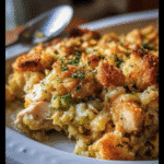 Stove Top Chicken Stuffing Mix: This is the star of the show! The stove top stuffing mix brings a unique blend of herbs and spices, creating a flavorful topping for the casserole. While it’s convenient, you can also make your own stuffing mix using stale bread, herbs, and spices if you prefer a homemade option.