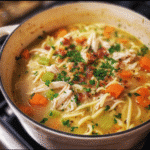 Homemade chicken noodle soup is a dish that transcends mere nourishment; it’s a warm embrace on a chilly day, a remedy for a sniffly nose, and a family staple that often carries the weight of cherished memories. My journey with this beloved recipe began in my grandmother’s cozy kitchen, where the aroma of simmering chicken, garlic, and herbs would fill the air, weaving a tapestry of comfort that would envelop anyone who entered. I remember the first time I learned to make it—standing on a stool to reach the counter, my grandmother guiding my hands as we chopped vegetables together, her stories of family dinners echoing in the background.