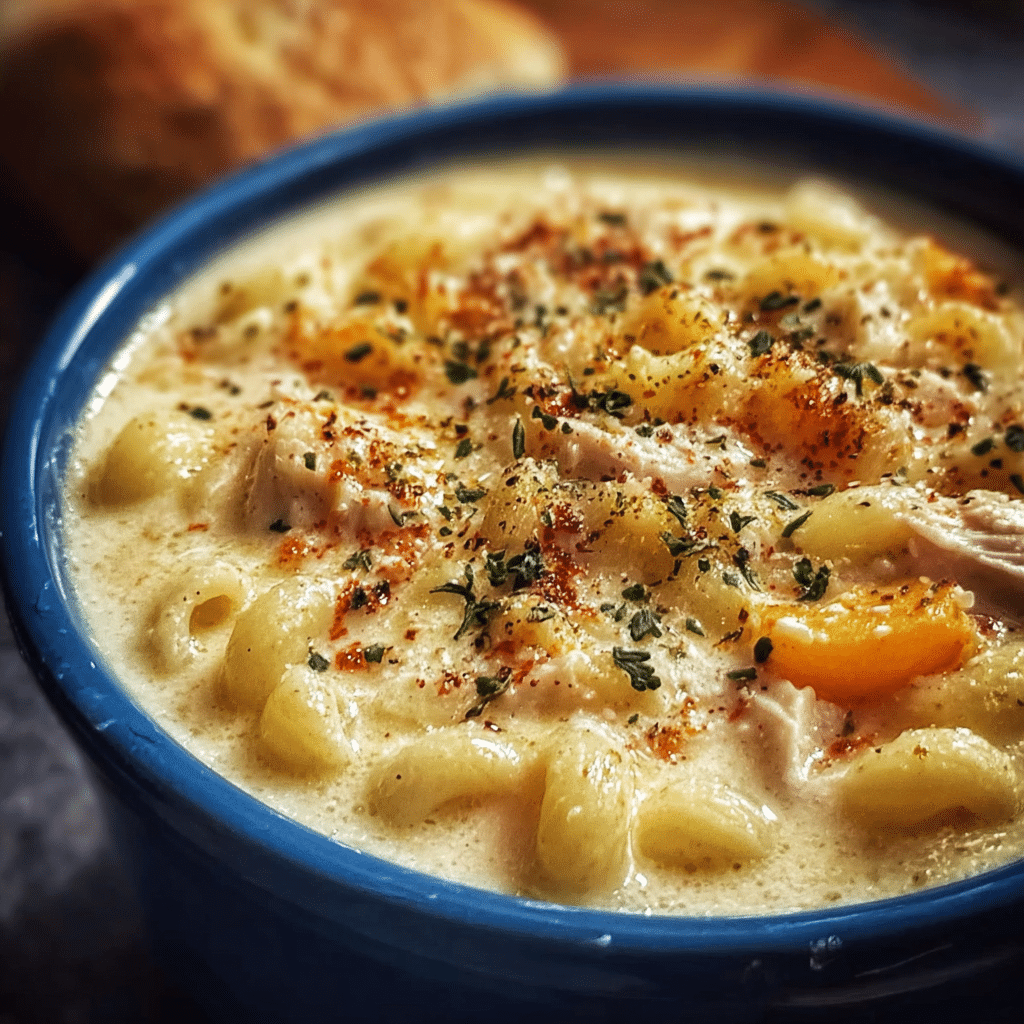 Make Cozy Creamy Chicken Macaroni Cheese Soup