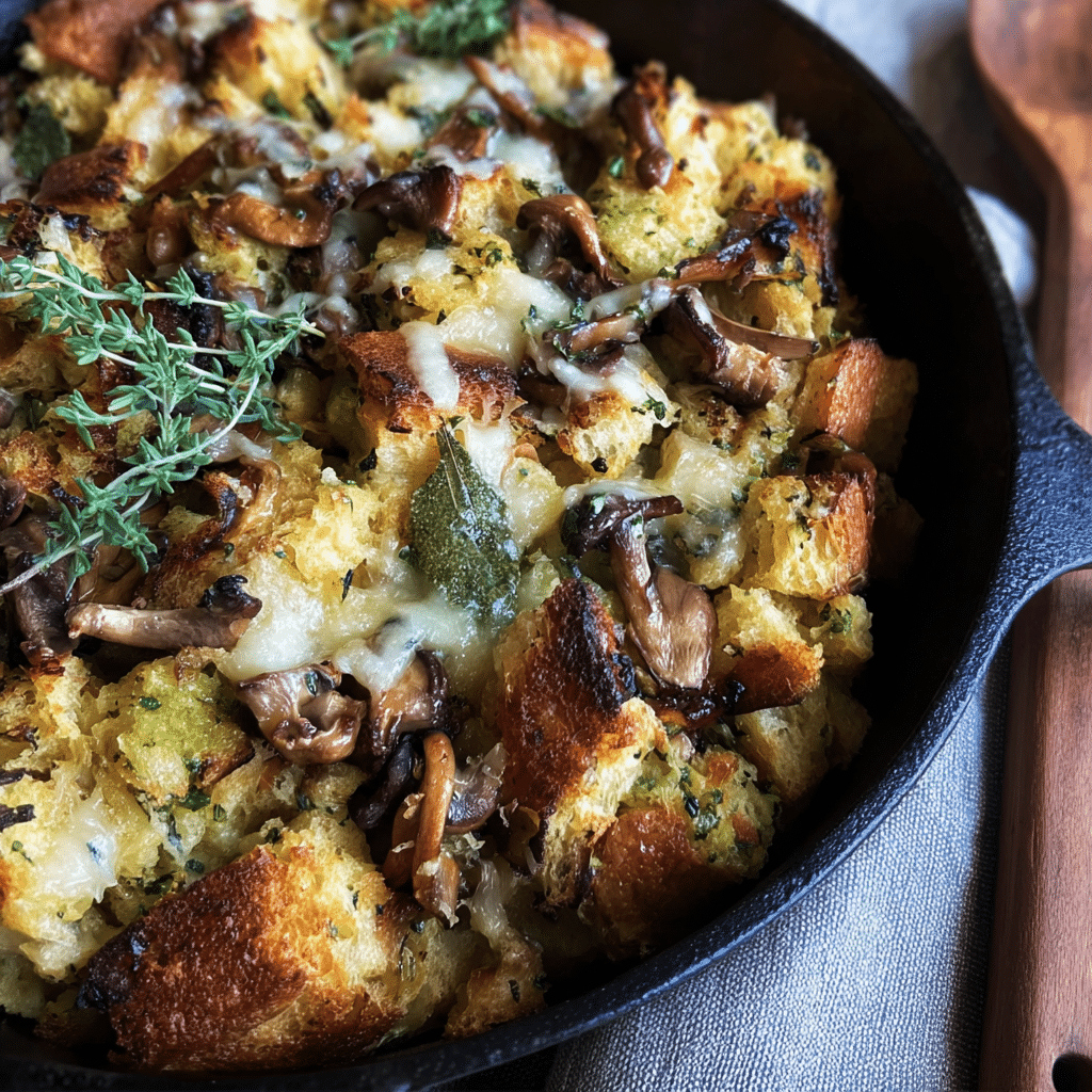 Mushroom Brioche Stuffing with Fontina & Herbs