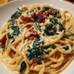 Over the years, as I transitioned into adulthood and began to build my own family, the recipe for spaghetti & spinach with sun-dried tomato cream sauce remained a constant in my kitchen. It became my go-to dish for busy weeknights and special occasions alike. There’s something incredibly satisfying about tossing together a handful of ingredients to create a meal that feels both luxurious and comforting. As I juggled work, parenting, and everything else life threw my way, this dish became a beacon of hope and a reminder that delicious food doesn’t have to be complicated. In under thirty minutes, I could serve my family a meal that was not only delicious but also visually stunning, thanks to the vibrant colors of the spinach and the rich, sun-kissed hues of the tomatoes.