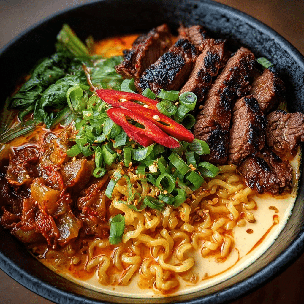 As I delved deeper into the world of Korean cuisine, I learned that spicy Korean ramen is not just a dish; it’s a celebration of flavors and culture. This beloved dish is a staple in Korean households, often enjoyed during cold winter nights or as a quick, satisfying meal that can be whipped up in no time. The combination of chewy noodles and a spicy broth, paired with grilled beef, creates a culinary experience that is both comforting and exciting. It’s this balance that sets this recipe apart from traditional ramen, which often leans towards lighter, less spicy broths. The addition of a creamy sauce elevates the dish, giving it a unique twist that is sure to impress.