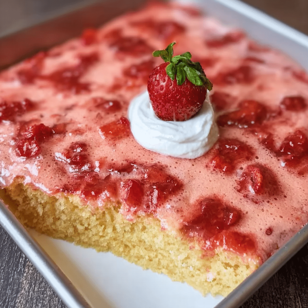 What makes the strawberry poke cake so special is the emotional connection it fosters. It’s not just a dessert; it’s a dish that evokes memories of celebrations, laughter, and shared moments. Whether it’s a birthday party, a summer picnic, or just a Tuesday night dinner, this cake has a way of bringing joy to the table. The vibrant strawberries and creamy topping are enough to put a smile on anyone’s face, and that’s the magic of homemade desserts.
