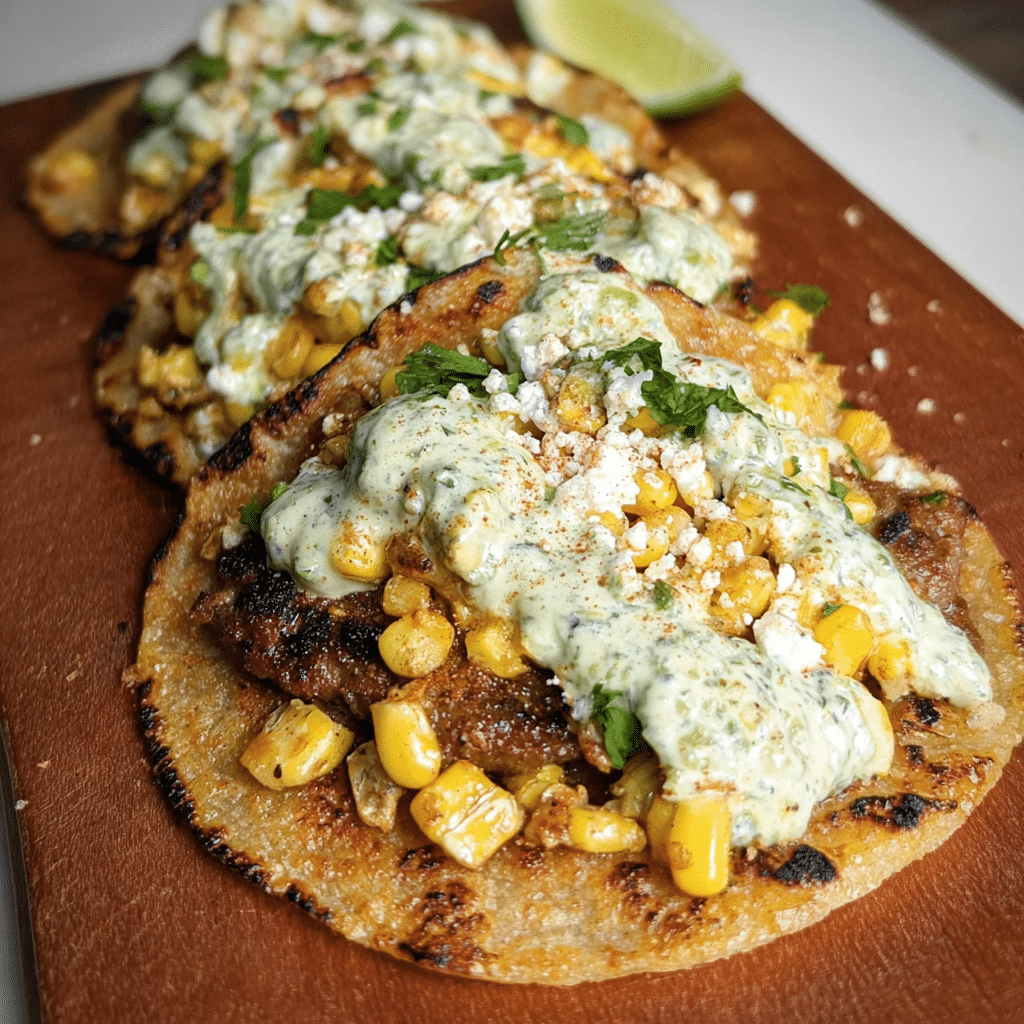 - Assemble the Tacos: Once the burgers are done, place a patty on each tortilla. Top generously with the street corn smash mixture. Don’t be shy—this is the star of the dish!