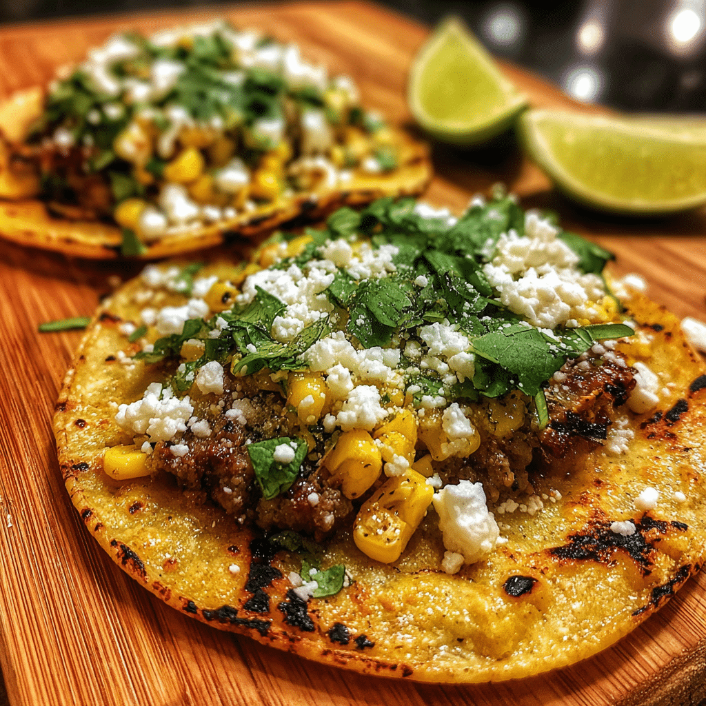Street corn beef tacos are an innovative blend of traditional Mexican street corn flavors and savory beef. To create these, start by cooking ground beef in a skillet with spices like chili powder, cumin, and garlic until browned. Meanwhile, prepare the street corn topping by mixing cooked corn with mayonnaise, lime juice, cotija cheese, and chili powder. Once the beef is ready, fill warm corn tortillas with the beef and generously top with the street corn mixture. For added flavor, garnish with fresh cilantro and a squeeze of lime to enhance the dish’s zesty profile!