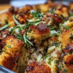 What makes stuffing sausage & herbs particularly special is its adaptability. It’s a dish that can be customized to suit your family’s tastes, using whatever ingredients you have on hand. I recall a time when I was in a pinch and had only stale bread, a few leftover sausages from a previous meal, and some herbs that were wilting in my fridge. With a little creativity, I transformed those humble ingredients into a comforting dish that my family devoured. This is the beauty of stuffing sausage & herbs—it embraces spontaneity and resourcefulness.