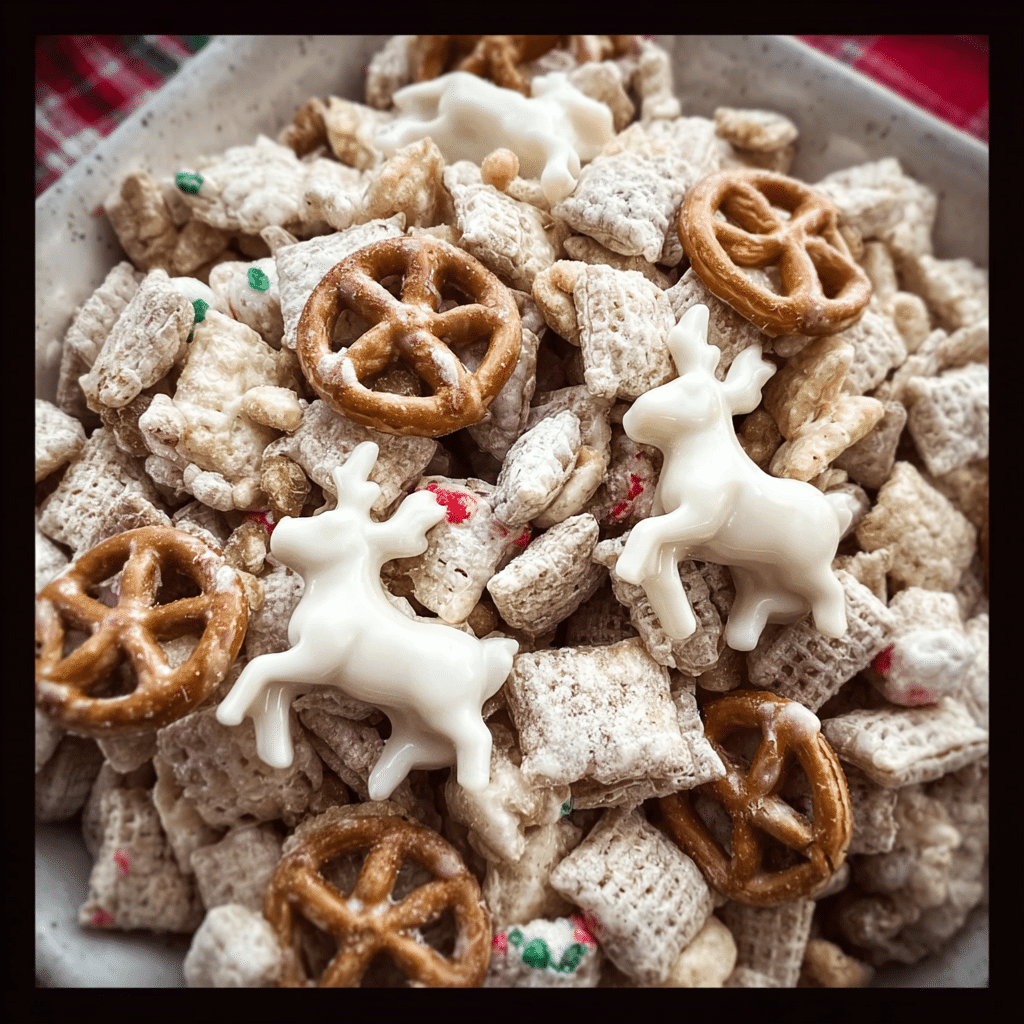 Pretzel Pieces: The addition of pretzel pieces introduces a delightful salty contrast to the sweetness of the white chocolate reindeer chow. Choose a brand that offers pretzel pieces rather than whole pretzels, as they blend in better with the other ingredients. Always opt for pretzels that are fresh and crispy; stale pretzels can ruin the texture of your mix.